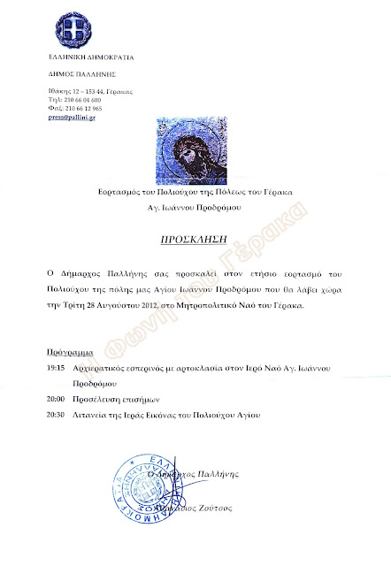 ΕΟΡΤΑΣΜΟΣ ΤΟΥ ΠΟΛΙΟΥΧΟΥ ΤΗΣ Δ.Ε. ΓΕΡΑΚΑ ΤΟΥ ΔΗΜΟΥ ΠΑΛΛΗΝΗΣ ΑΓΙΟΥ ΙΩΑΝΝΟΥ ΠΡΟΔΡΟΜΟΥ , ΤΡΙΤΗ 28-08-2012.